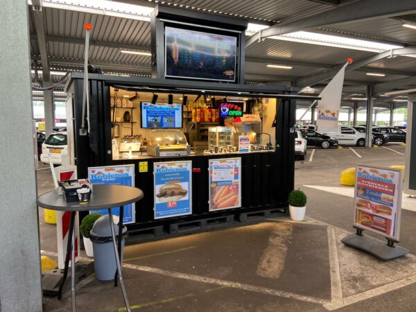 Il baldacchino di questo contenitore è super solido e contiene un sistema idraulico. Questo sistema consente di sollevare e chiudere in sicurezza il telone. Inoltre, la doppia porta del contenitore ti consente di posizionare oggetti di grandi dimensioni come botti di birra, congelatori, tavoli, ecc. È quindi il modo ideale per offrire un drink o uno spuntino a clienti o amici.