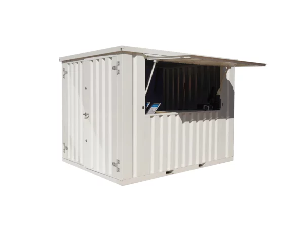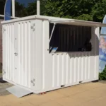 Il contenitore a barra pieghevole bianco misura circa 3 × 2 metri e ha una tenda pieghevole, le dimensioni sono quasi uguali a quelle di un contenitore pieghevole da 10 piedi. È ideale per le persone che aspettano di essere asciutte e dà al contenitore l’aspetto di una vera barra. La tenda può anche essere bloccata, quindi il contenitore a barre può essere lasciato con l’azienda all’interno in completa sicurezza. Inoltre, c’è una doppia porta sul lato piccolo che ti consente di portare oggetti voluminosi come una canna di birra. È quindi la soluzione ideale per offrire una barra durante gli eventi. Un contenitore a barre semplice ma solido in un colore elegante e pulito come bianco, Ral 9016.