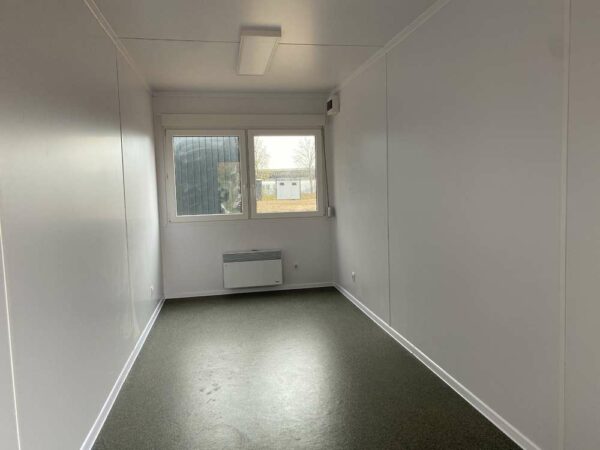 In PVC – voce 380 V, 32 A, 5 poli; 1 scatola e distributore di fusibili, 2 lampade a LED, 1 interruttore, doppia pressa da 230 V, finestre e protezione solare – 1 finestra doppia / 200 cm x 120 cm e persiane in PVC 1 porta – 200 cm x 90 cm