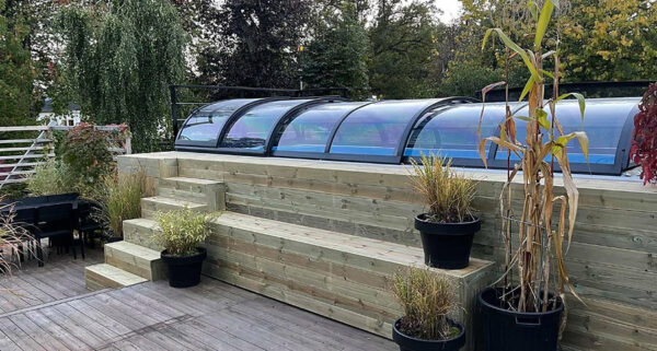 Container del pool 6,11 mx 2,5 m pronto per l’uso con tetto, pacchetto premium